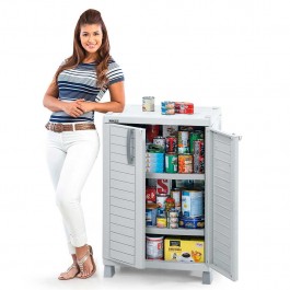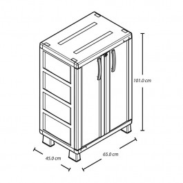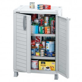 Armario Mediano con 2 entrepaños ajustables que resisten hasta 25 Kg cada uno. Fácil de armar, mover y limpiar. Con la resistencia y beneficios del plástico. Excelente capacidad interior, con orificio para uso de candado para mayor seguridad. De apariencia moderna y elegante. Ideal para interiores y exteriores.