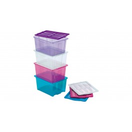Caja Multiusos Apilable. Optimiza y organiza tu espacio. Apila las cajas sin tapa y para encajarlas gíralas 180° en cualquier dirección.