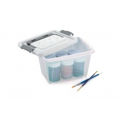 Cajas multiusos con manija y cerraduras que aseguran la tapa y la convierten en portable. Ideal para que los niños aprendan a guardar y organizar sus espacios.