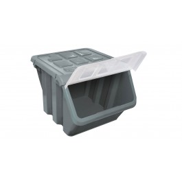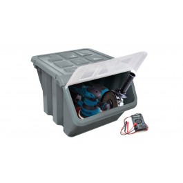 Guarda herramientas y accesorios . Tiene una capacidad de 33 litros, tapa abatible y cierre de clic para brindarle mas seguridad a los objetos que se guardan La caja es es apilable. Es fácil de usar, es segura y muy fácil de limpiar y no se oxida