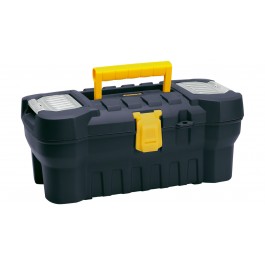 Caja de herramienta mediana. Resistente y funcional. Sirve para almacenar las herramientas más esenciales para realizar cualquier trabajo. Se pueden guardar martillos, llaves, alicates, destornilladores, cortafrío, taladros pequeños, entre otros. Adicionalmente, cuenta con prácticos compartimientos que nos permiten clasificar e identificar rápidamente aquellos elementos de tamaños pequeños, además de que evitamos que se nos pierdan con facilidad. Resiste hasta 25 kg