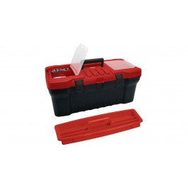 Caja de herramienta grande. Resistente y funcional. Sirve para almacenar las herramientas necesarias para realizar cualquier trabajo. Se pueden guardar martillos, llaves, alicates, destornilladores, pinzas, juego de dados, copas, segueta, taladros, entre otros. Adicionalmente, cuenta con prácticos compartimientos que nos permiten clasificar e identificar rápidamente aquellos elementos de tamaños pequeños, además de que evitamos que se nos pierdan con facilidad. Resiste hasta 35 kg