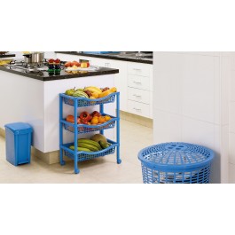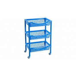 Canasta móvil rectangular que incluye tres niveles para organizar. Tiene rodachinas. Fácil de armar, no requiere herramientas. Ideal para organizar en casa todo tipo de objetos. No se oxida y es fácil de limpiar. Úsala en cocina, baños, cuartos de niños, como organizador auxiliar. Es tejida y permite oxigenar los productos o alimentos que guarde.