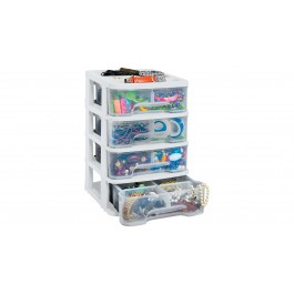 Gavetero pequeño con organizador, ideal para usarlo para clasificar objetos pequeños. Tiene cuatro gavetas, las cuales tienen 4 divisiones re movibles que se pueden ajustar de acuerdo a sus requerimientos. Tapa organizadora con compartimentos para clasificar. Fácil de limpiar. Úsalo en el baño,cocina, cuarto de ropas, estudio, habitaciones, closets y garaje.