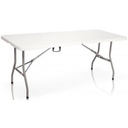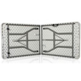 Mesa plegable, superficie plástica y patas metálicas. Cuenta con un largo de 183 cm ideal para 10 puestos. Es resistente, se puede llevar con facilidad y usar donde se requiera.