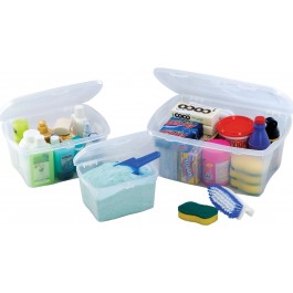 Set de tres cajas multiusos con tapa abatible y cierre de clic. Cuenta con y tres tamaños complementarios e ideales para guardar todo en casa. Caja de 2,5 Litros + Caja de 6 Litros + Caja 12 litros.