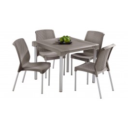 Silla SHIA con apariencia Rattan, con tejido perforado que imita el tejido artesanal. Exclusiva mezcla de materiales y patas en aluminio que no se oxidan. Con tacón antideslizante. Cómoda y ergonómica.